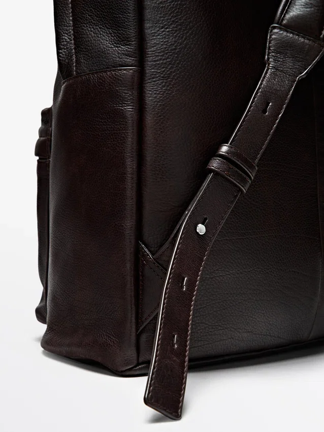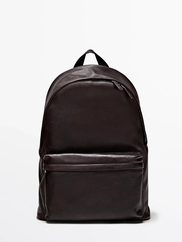 Backpack Made of Cowhide Leather with a Nappa Leather Finish. Zip Fastening. Handle. Features One Main Compartment and an Interior Zip-Up Pocket.. Cotton Lining.