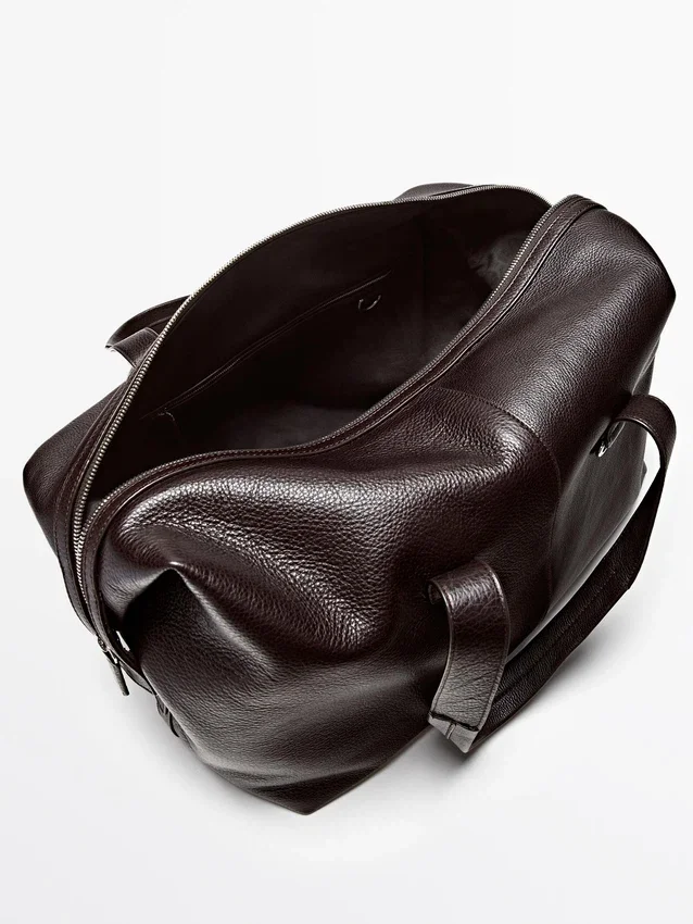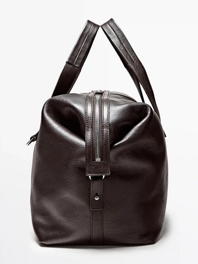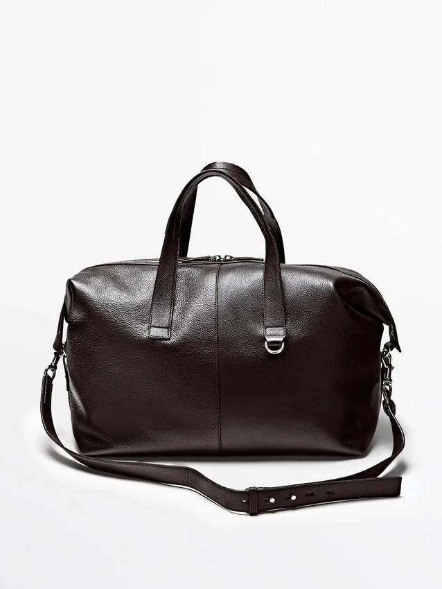 Handbag Made of Cowhide Leather with a Nappa Finish. Adjustable and Detachable Crossbody Strap. It Has a Two-Way Zip Fastening. Wrist Strap. Inner Pocket with Zip. Cotton Lining.