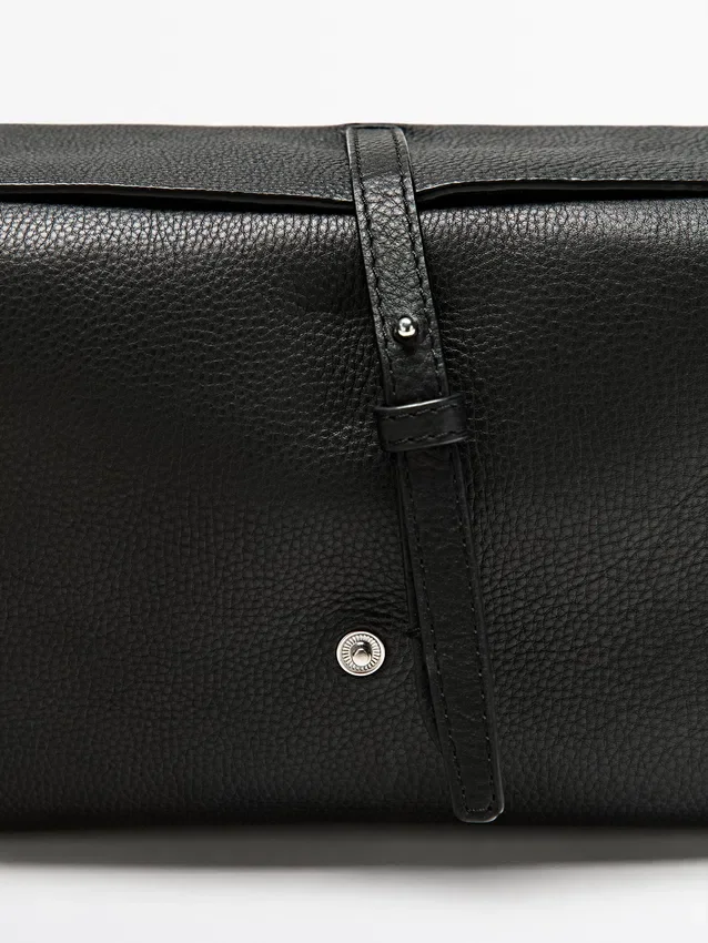Toiletry Bag Made of Cowhide Leather with a Nappa Leather Finish.. Concealed Snap Button Fastening .