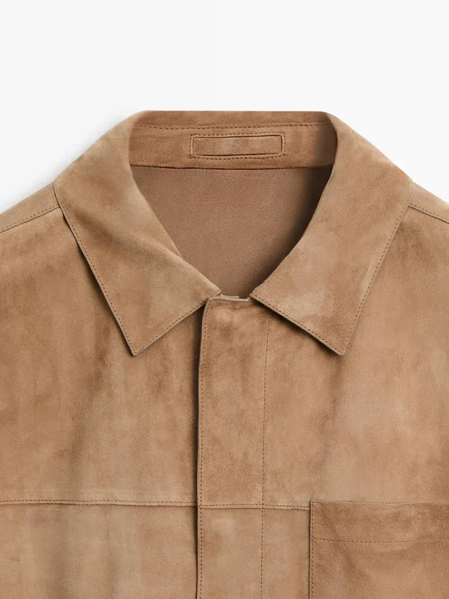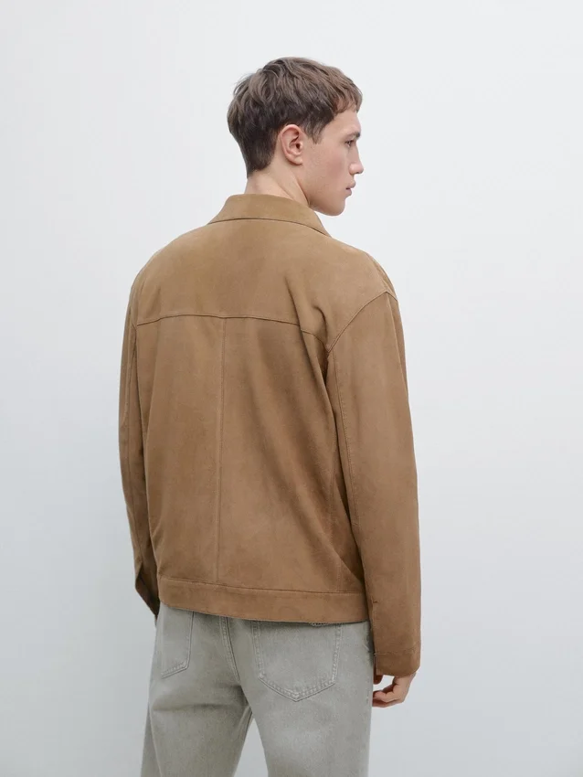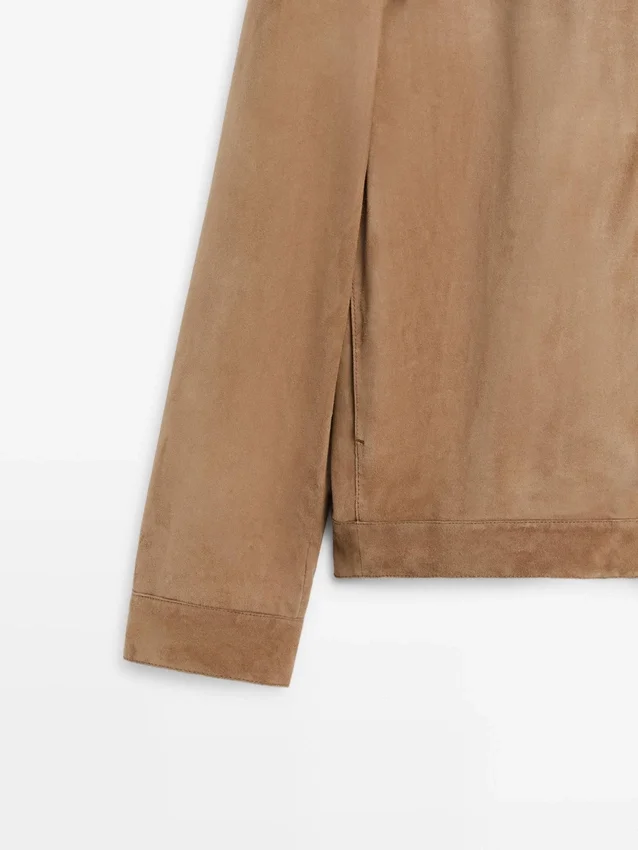 Jacket Made of Goatskin Leather with a Suede Finish. Shirt Collar. Concealed Zip Closure with Buttoned Placket. Patch Pocket at the Chest. Lined.