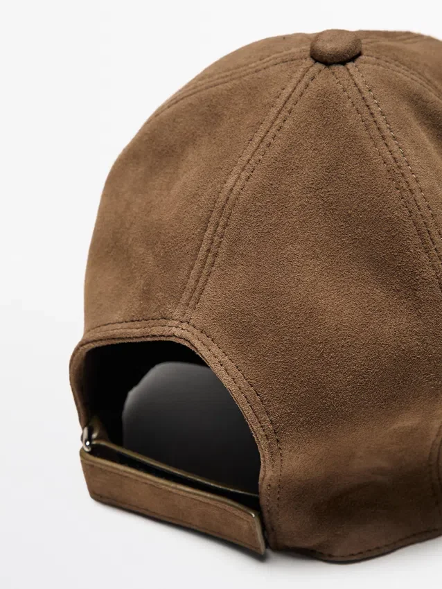 Cap Made of 100% Goatskin Leather Fabric with a Suede Finish. Adjustable Hook-And-Loop Strap Fastening .