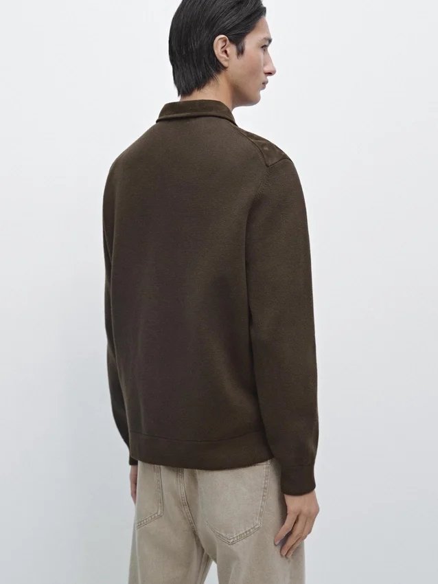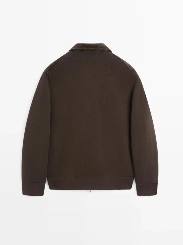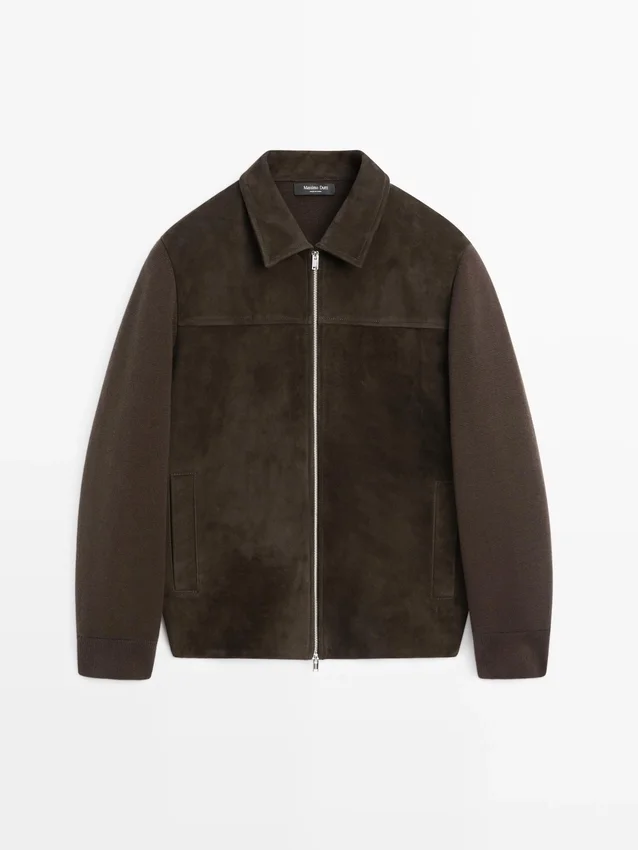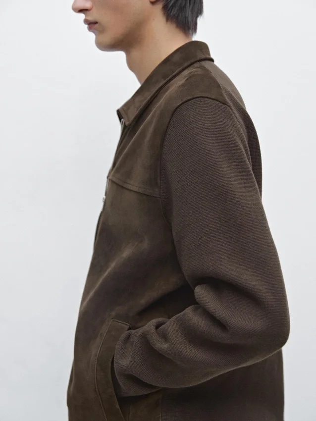 Contrast Jacket in Cotton and Sheepskin Fabric with Split Suede Finish. Long Sleeves. It Has a Two-Way Zip Fastening. Polo Collar. Two Side Pockets.