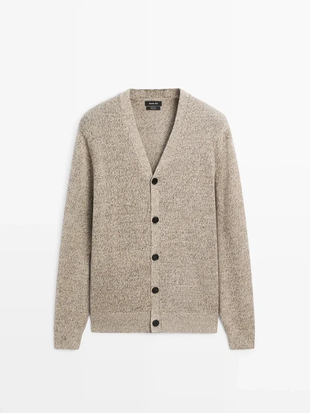 Cardigan Made of Knitted Fabric with Cotton. V-Neck. Long Sleeves. Button-Up Front. Ribbed Trims .