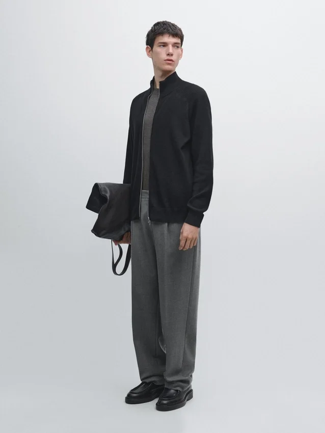 Cotton Blend Knit Cardigan. Raglan Sleeve. Long Sleeves. It Has a Two-Way Zip Fastening.