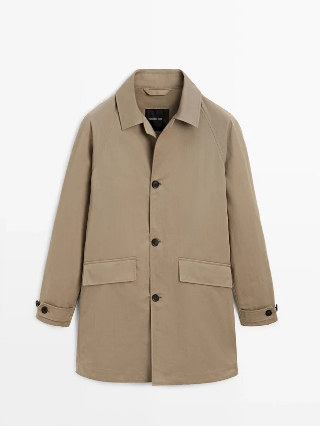 Shirt Collar. Long Sleeves. Button-Up Front. Two Flap Pockets.