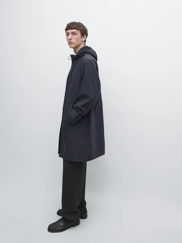 Long Parka Made of Technical Fabric . Long Sleeves with Button Detail . Concealed Zip Closure with Buttoned Placket. High Neck with Hood. Two Side Pockets.