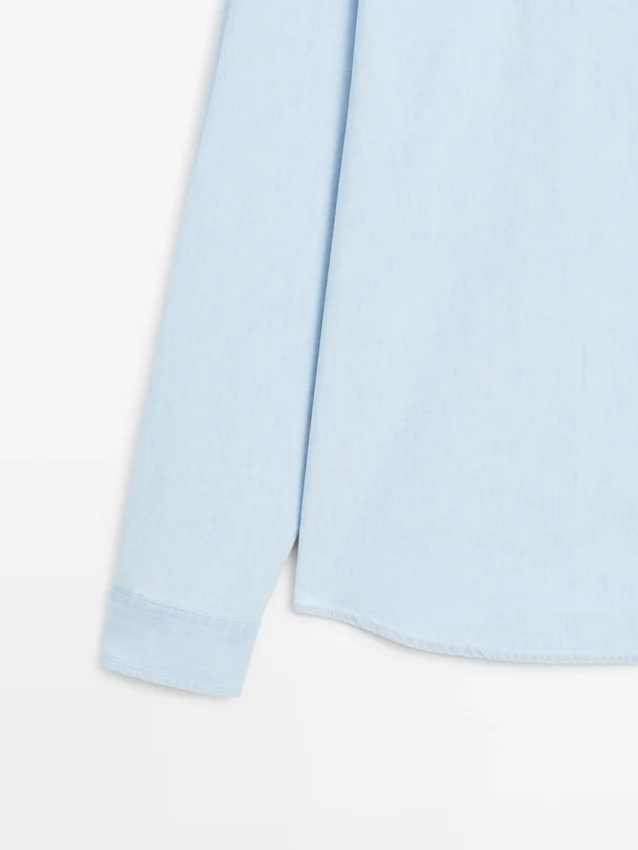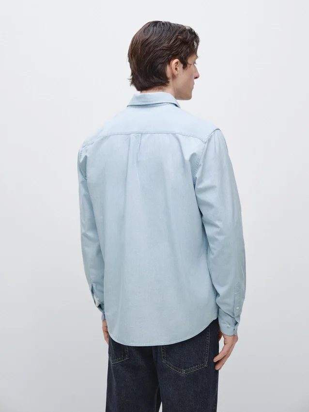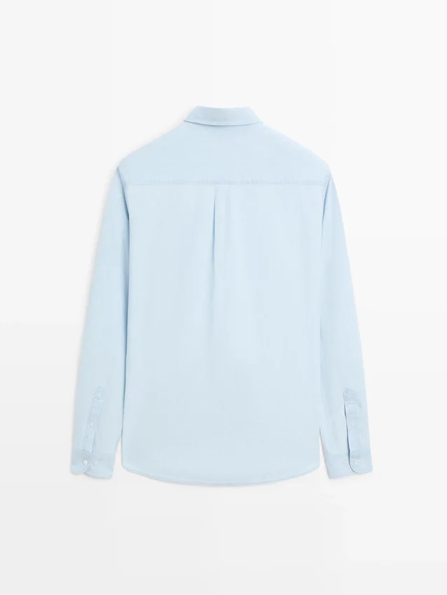 Shirt Made of 100% Cotton Fabric with a Denim Finish. Long Sleeves with Buttoned Cuffs. Shirt Collar. Regular Fit: This Fit Offers Comfort with a Little More Room in the Torso. Button-Up Front.