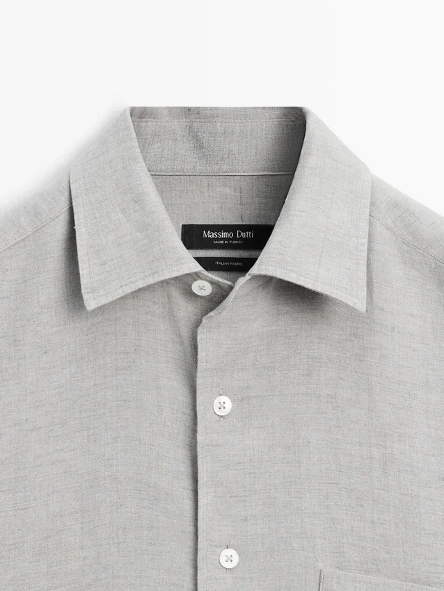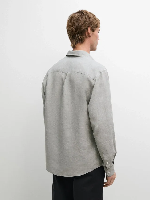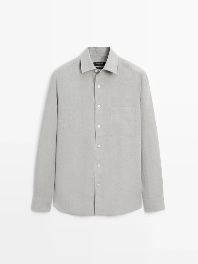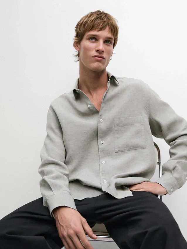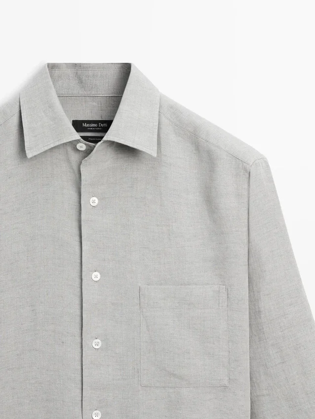 100% Linen Shirt with Pocket Detail