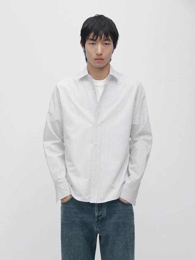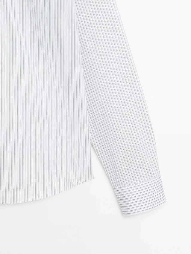 Regular Fit: This Fit Offers Comfort with a Bit More Room in the Torso and Arms, Providing a Classic, Yet Relaxed Style. Shirt Made of Cotton Blend Fabric. Long Sleeves with Buttoned Cuffs. Shirt Collar. Button-Up Front. Striped Detail.
