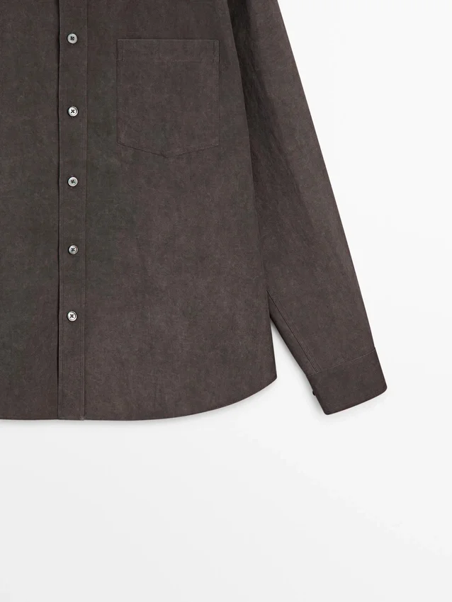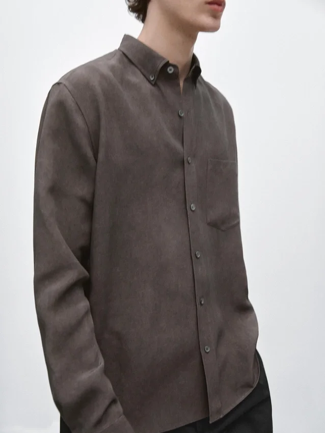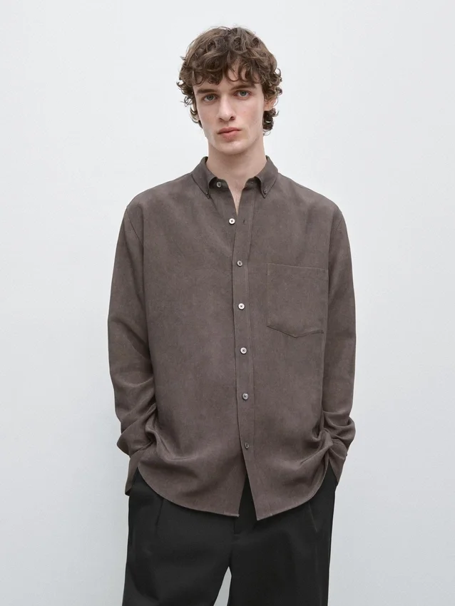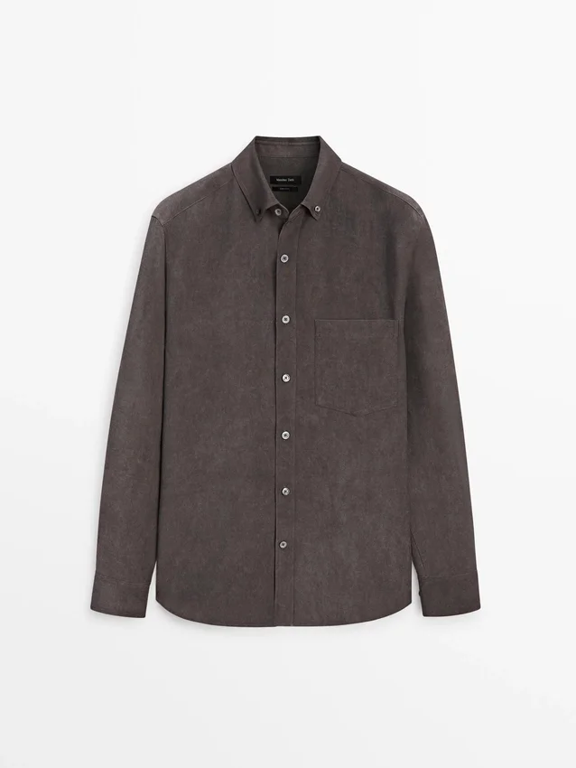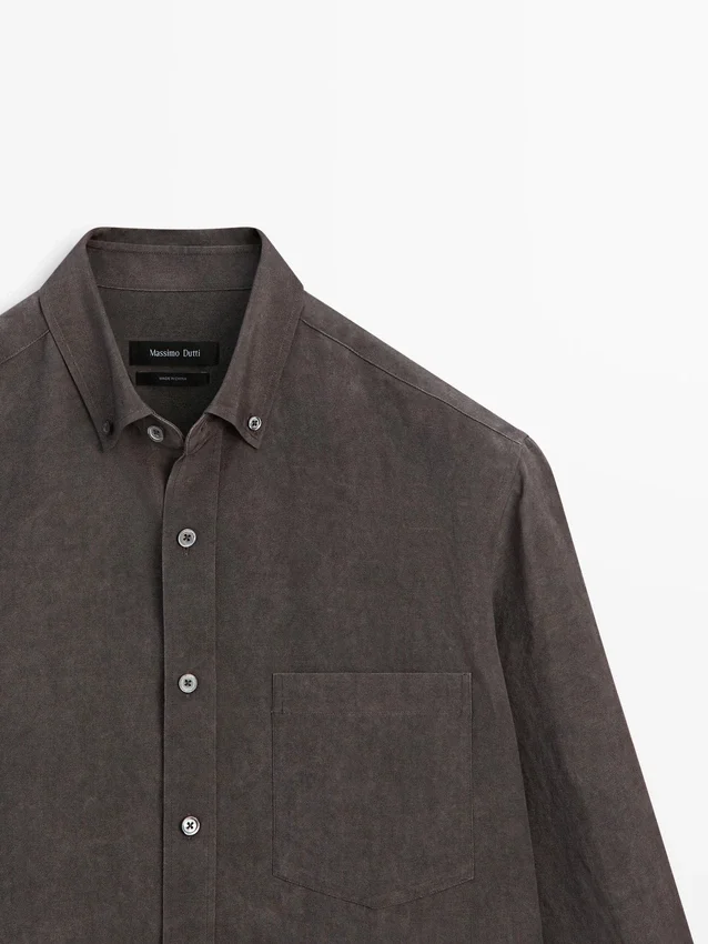 Shirt Made of a Lyocell Blend Fabric. Long Sleeves with Buttoned Cuffs. Shirt Collar. Button-Up Front.