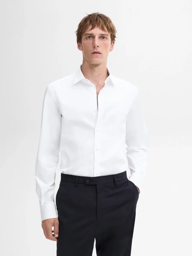 Slim Fit Shirt: This Fit Features a Slightly Fitted Silhouette, Snug in the Torso, Shoulders and Arms, Providing a More Defined and Slimming Appearance. Long Sleeves with Buttoned Cuffs. Oxford Collar. Button Fastening. Easy Iron.