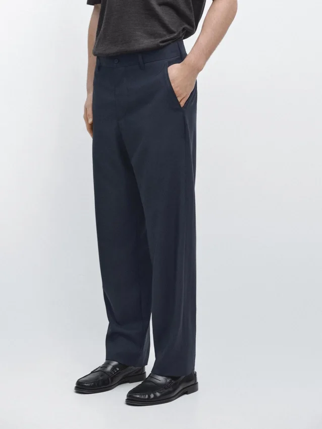 Suit Trousers Made from 100% Wool Main Fabric. Waistband with Belt Loops . Zip Fastening Concealed by a Placket, Button and Buttoned Strap. Two Side Pockets. Two Buttoned Welt Pockets on the Back. Cool Wool: Lightweight, Breathable and Wrinkle-Resistant Fabric.. This Garment is Part of a Suit.