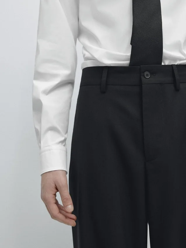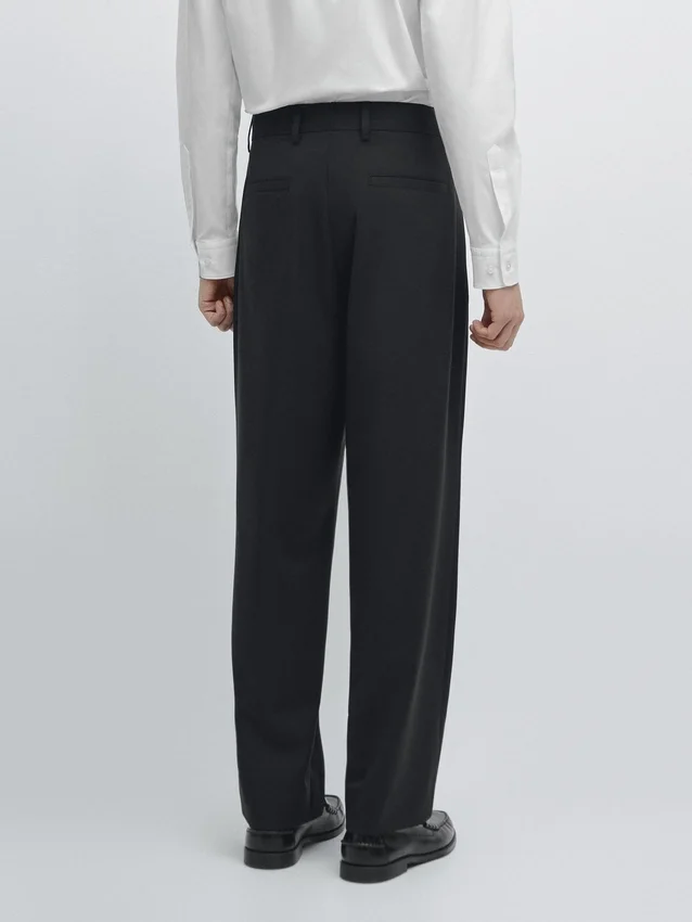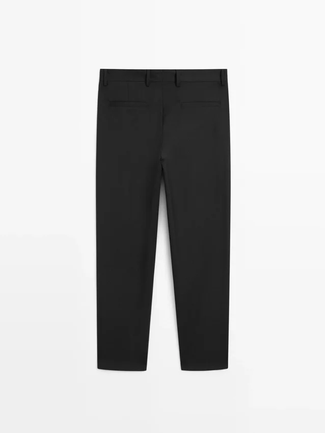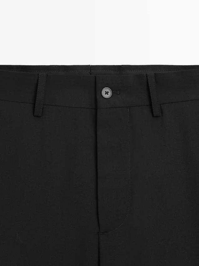 Suit Trousers Made from 100% Wool Main Fabric. Waistband with Belt Loops . Front Zip and Button Closure. Two Side Pockets. Two Buttoned Welt Pockets on the Back. Cool Wool: Lightweight, Breathable and Wrinkle-Resistant Fabric..