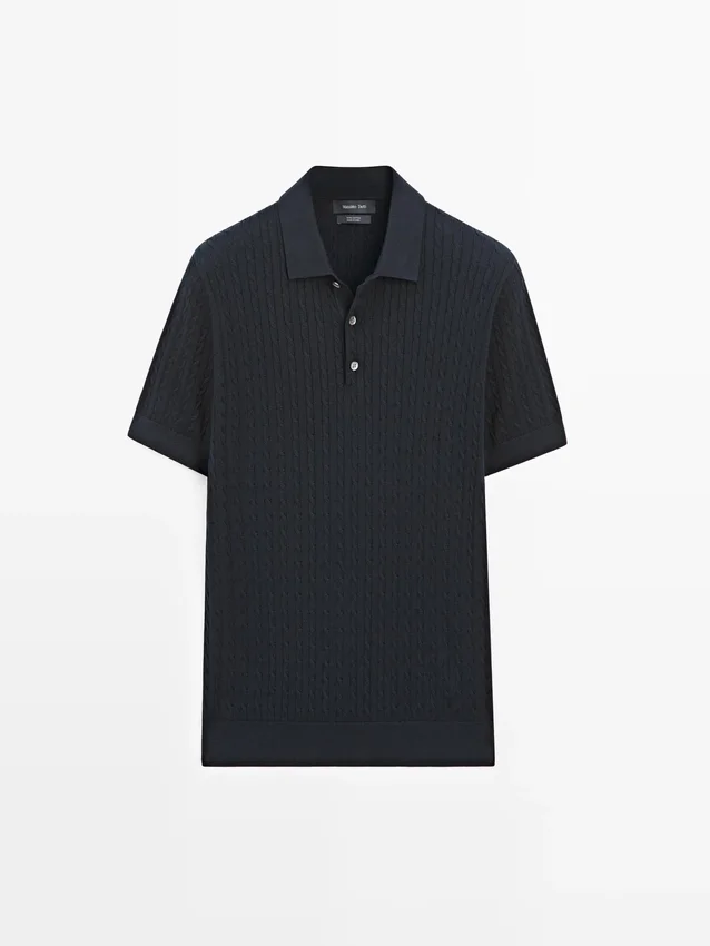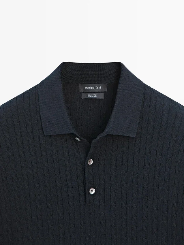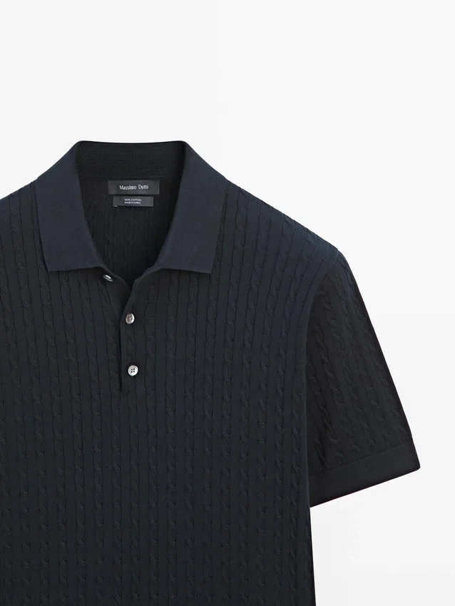 Polo Shirt Made of 100% Cotton Knit Fabric. Short Sleeves. Polo Collar with Button Fastening. Braided Detail.
