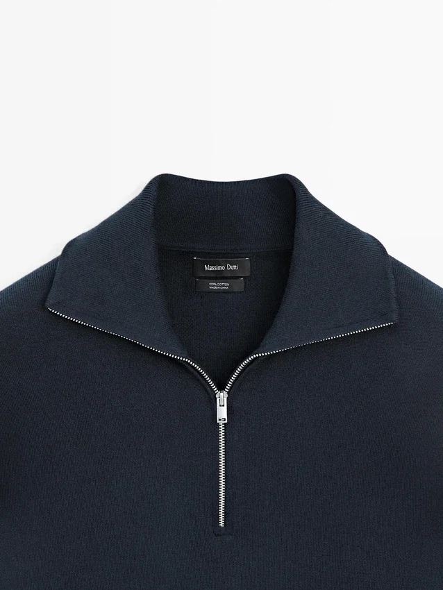 Knit Jumper Made of Cotton Fabric. Long Sleeves. Zip Fastening on the Neck. Mock Neck with Zip. Ribbed Trims . Soft Fabric That’s Pleasant to the Touch .