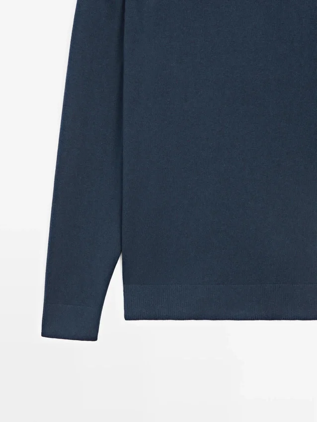 Cotton and Wool Blend Knit Sweater. Crew Neck. Long Sleeves. Ribbed Trims .