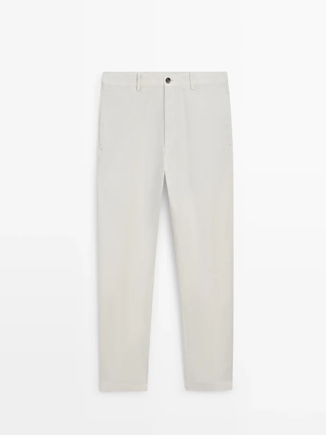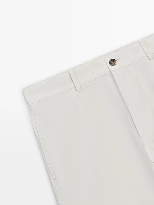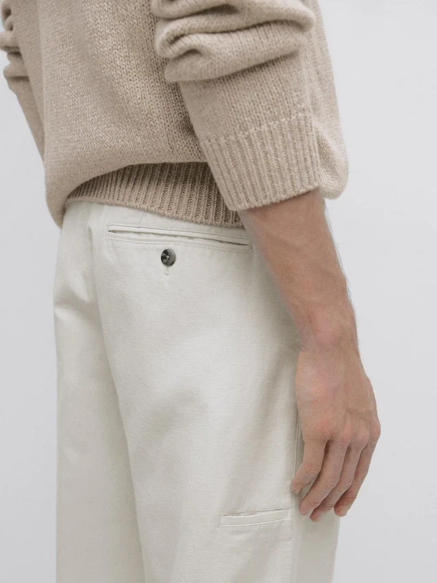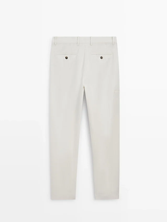 Tapered Fit Trousers: This Cut Features a Relaxed Fit at the Waist That Gradually Tapers Towards the Ankles.. Trousers Made of a Linen Blend Fabric. Waistband with Belt Loops . Front Zip and Top Button Fastening. Carpenter Side Pocket.