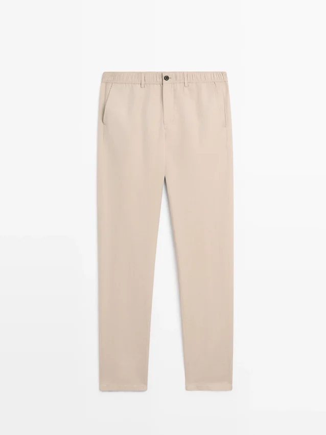 Jogger Fit Trousers: This Fit Features an Elasticated and Adjustable Waist, and the Leg is Usually Slightly Fitted, Offering a Relaxed Yet Modern Style.. Belt Loop Details . Front Zip and Top Button Fastening. Elasticated Waistband Detail. Two Side Pockets.