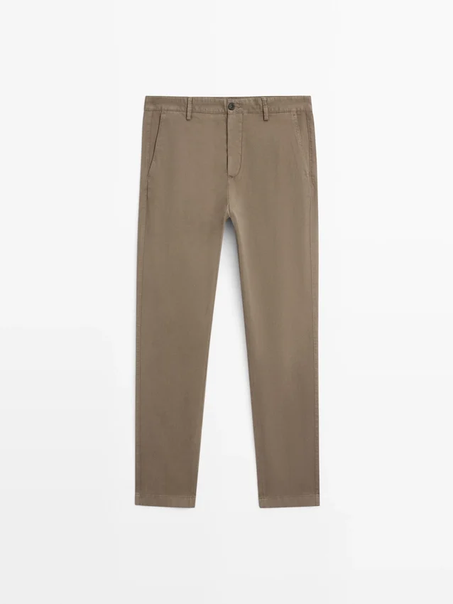 Slim Fit Trousers: This Fit Has a Slightly Tailored Silhouette, Tight at the Waist and Legs. Concealed Zip Fastening with Flap, Button and Inside Button. Two Side Pockets. Two Buttoned Welt Pockets on the Back. Detail of Fabric with Microstructure.