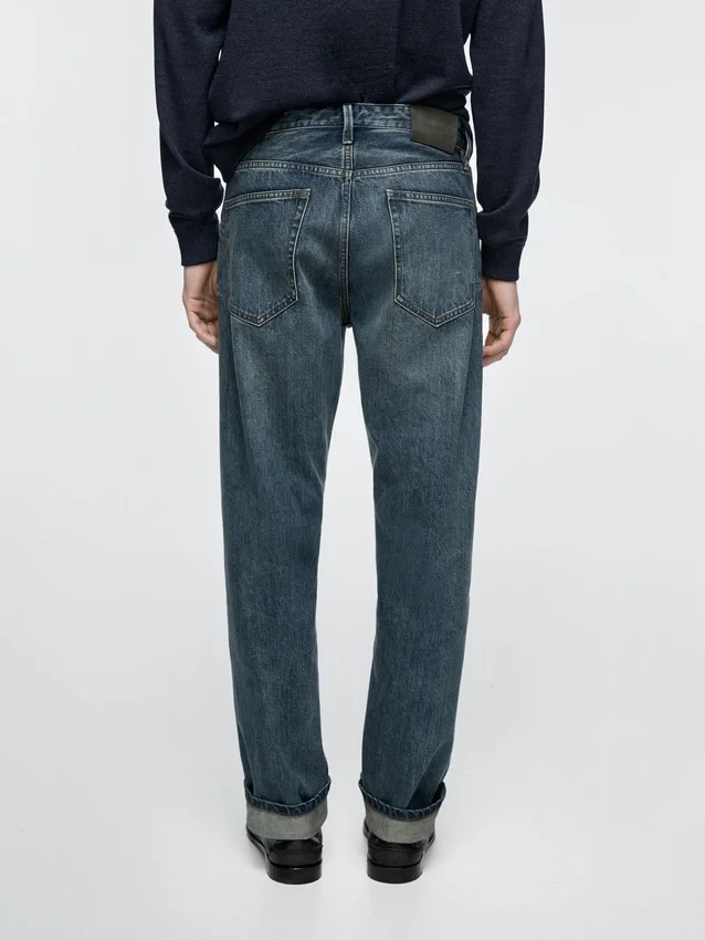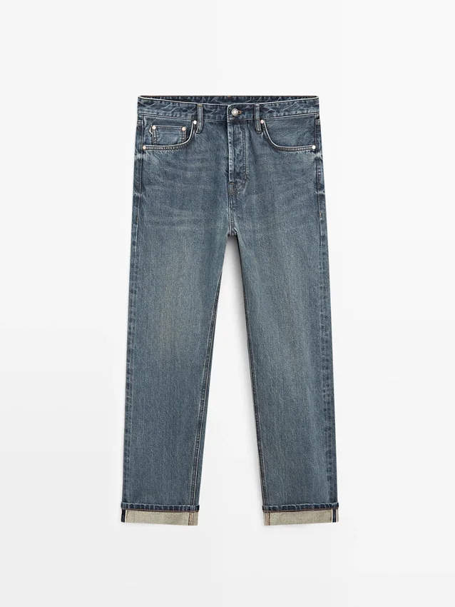 Selvedge Jeans with a Contrast Coloured Selvedge and Straight Outside Seam. Five-Pocket Design.