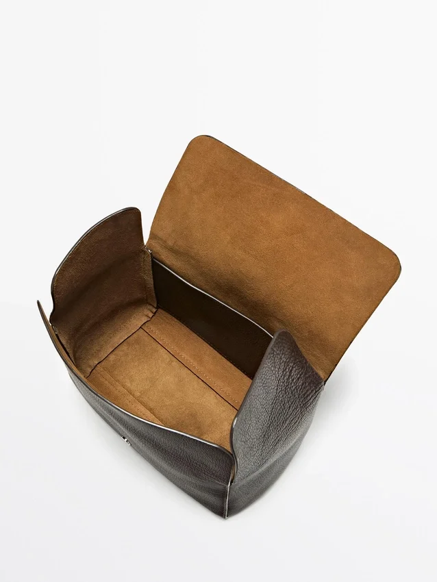 Travel Bag Made of Cowhide Leather with a Nappa Leather Finish. Magnetic Snap-Button Tab Fastening.