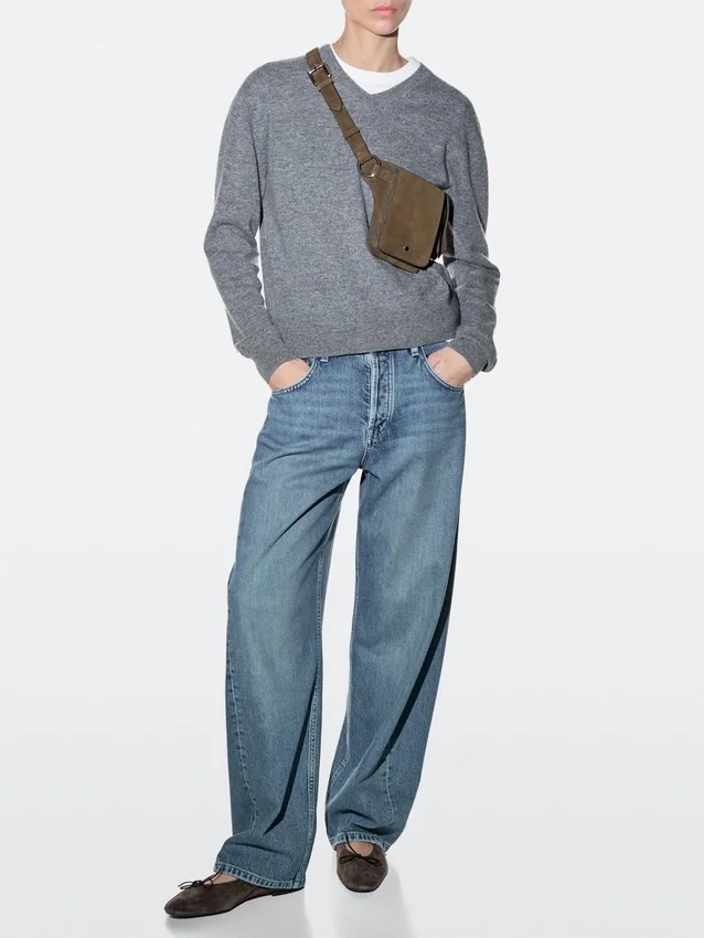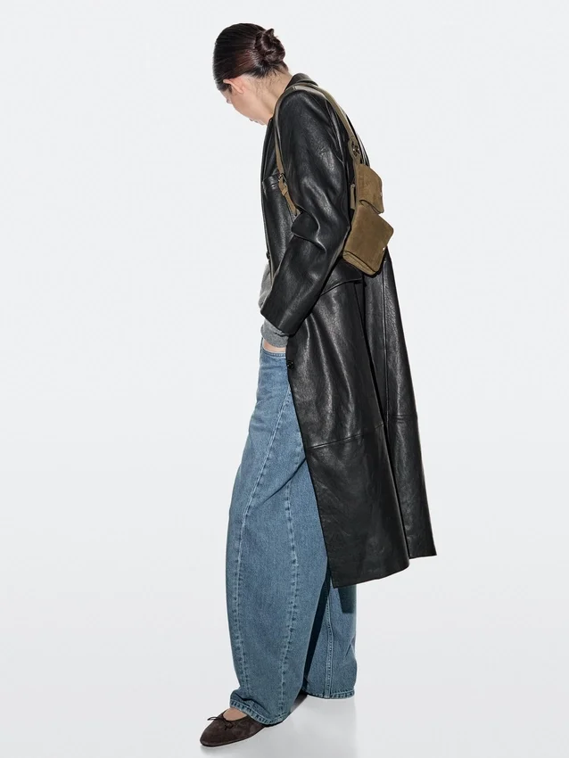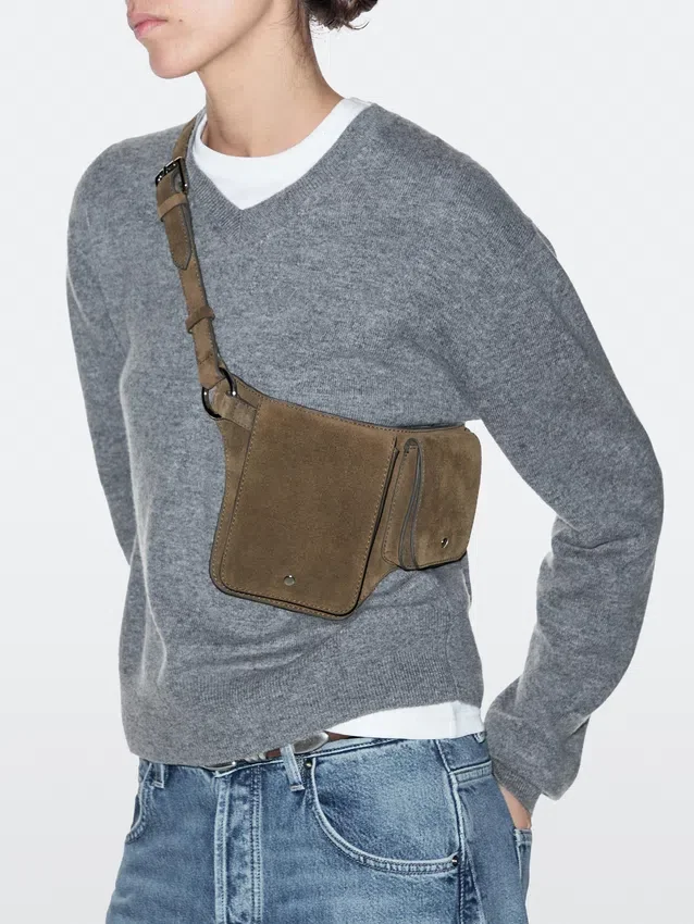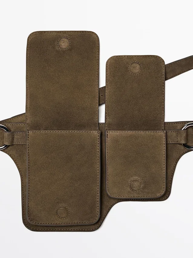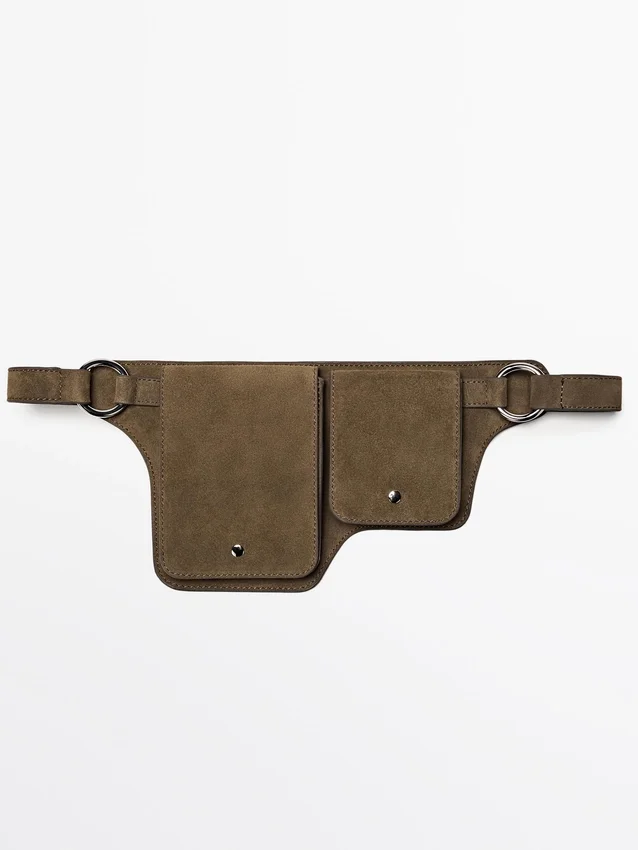 Belt Bag Made of Cowhide Leather and a Split Leather Finish. Two Compartments . Magnetic Snap-Button Fastening.