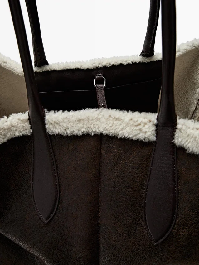 Maxi Bag Made from Cowhide Leather with Fur. Inner Buckle Fastening . Two Handles and/or Shoulder Strap.