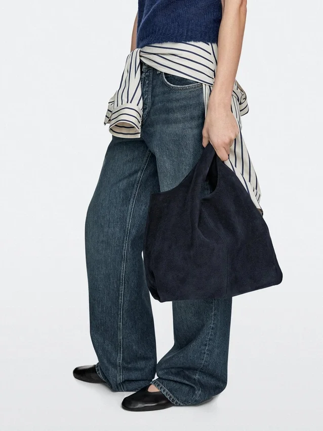 Tote Bag. Magnetic Snap-Button Fastening. Two Handles and Shoulder Straps . Cotton Lining. Made of Cowhide Leather with a Split Leather Finish.