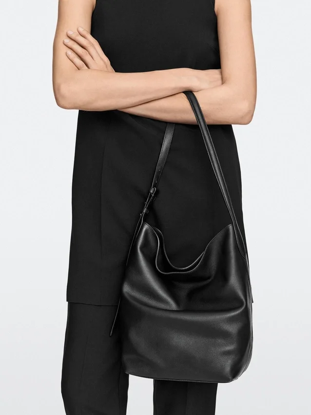 Handbag Made of Cowhide Leather with a Nappa Finish. Adjustable Crossbody Strap. Fastens with a Hidden Magnetic Snap Button. An Inside Pocket.