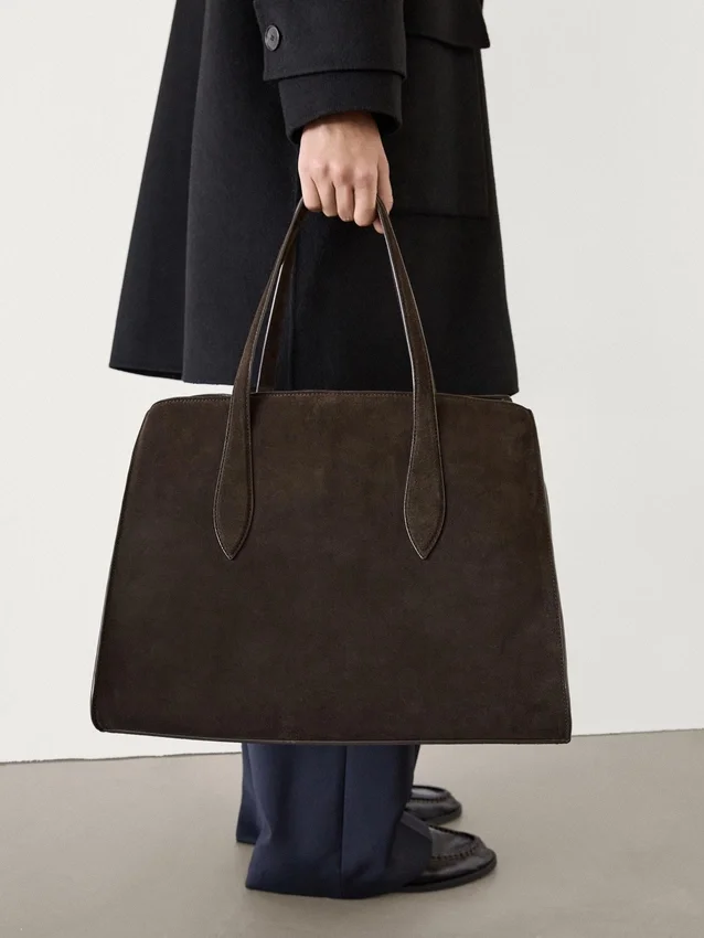 Maxi Tote Bag with Inside Buckle Closure . A Card Holder Pocket. Two Handles and Shoulder Straps . Main Compartment. Lined. Made from Bovine Leather.