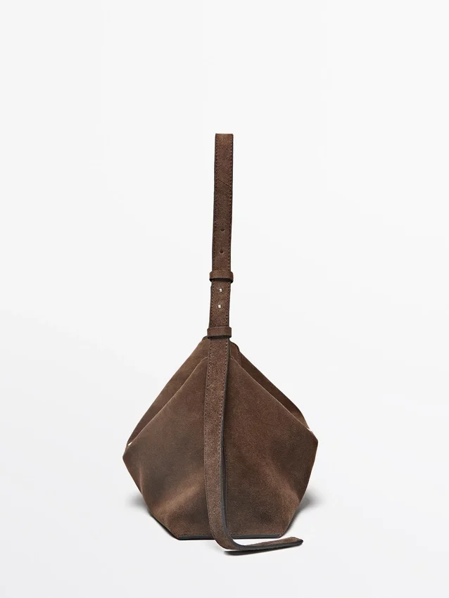 Handbag Made of Cowhide with a Split Leather Finish. Adjustable Crossbody Strap. Magnetic Snap-Button Fastening. An Inside Pocket. Cotton Lining. Metal Stud Detail.