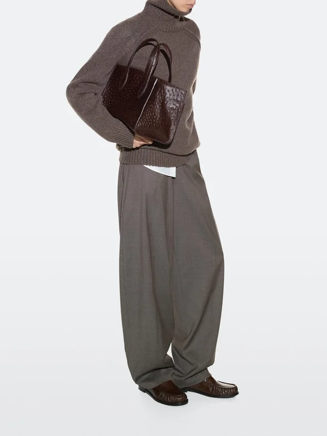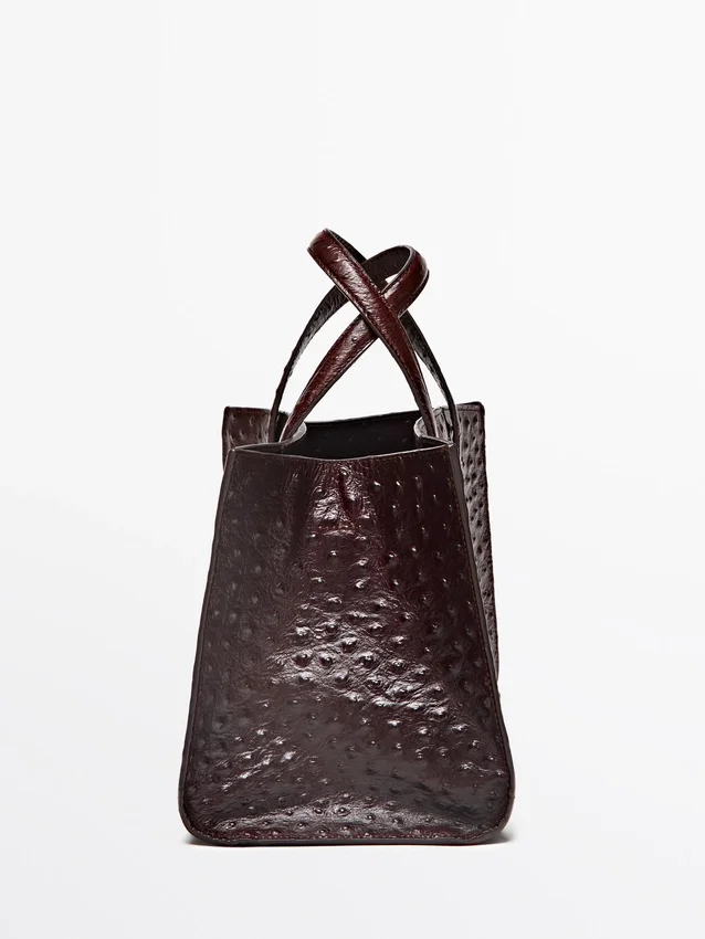 Handbag Made of Bovine Leather with Sheepskin Details. Adjustable and Detachable Crossbody Strap. Two Handles. Cotton Lining. Leather Detail with a Textured Finish.