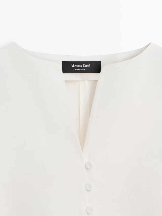 Jacket Made of 100% Linen Fabric. Long Sleeves with Buttoned Cuffs. Crew Neck with Opening. Button-Up Front. Side Vents at the Hem. Wide and Relaxed Silhouette, Not Tailored.