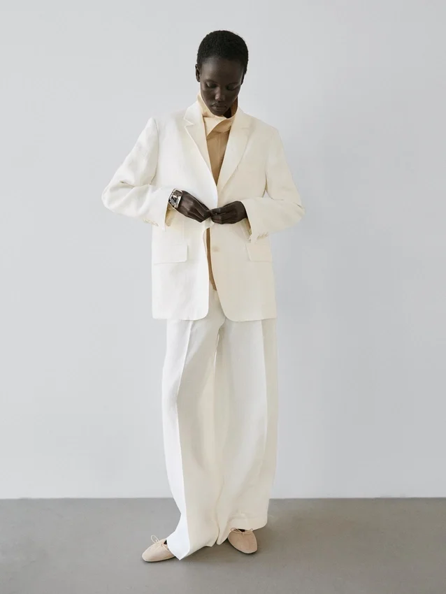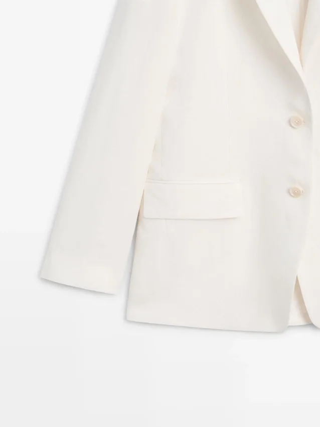Blazer Made of 100% Linen. Lapel Collar. Long Sleeves. Two-Button Fastening. Two Flap Pockets. Insert Welt Pocket at the Chest. Lined. This Garment is Part of a Suit.