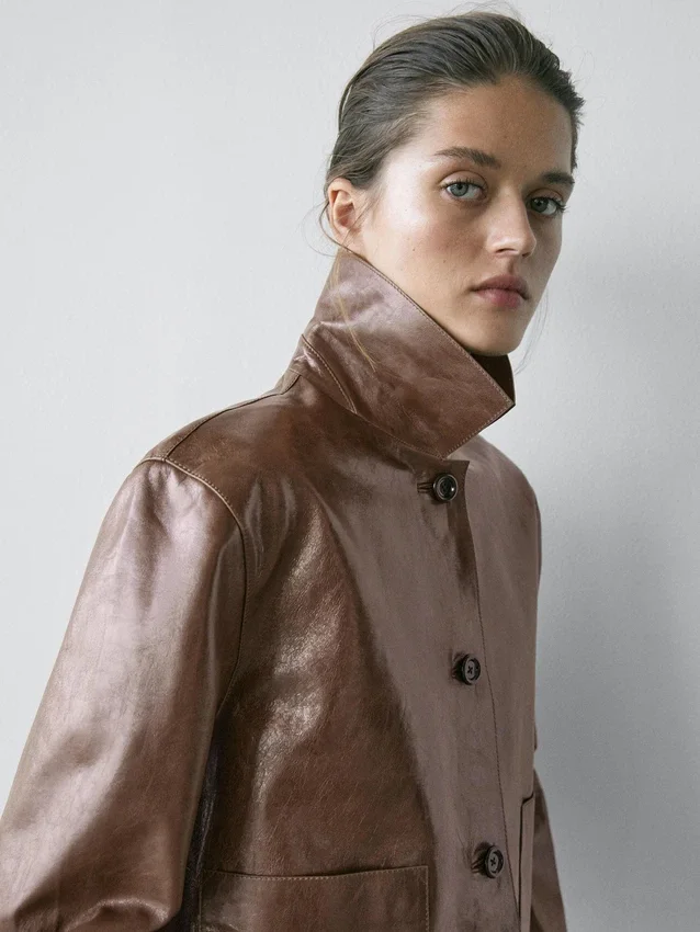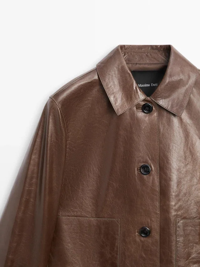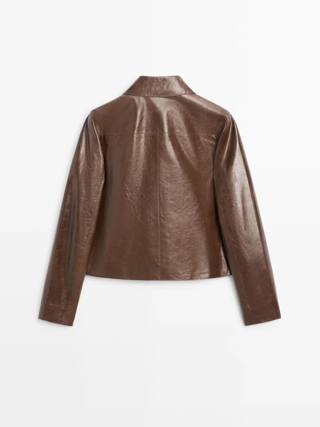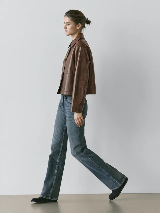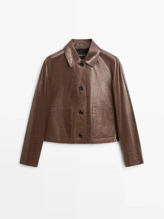 Cropped Jacket. Shirt Collar. Long Sleeves. Three-Button Fastening.
