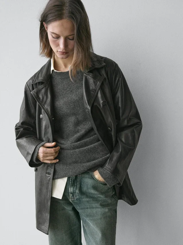 Sheepskin Leather Jacket with Nappa Finish. Notched Lapel Collar. Long Sleeves. Double-Breasted Button Fastening at the Front. Seam Details . Includes Belt.