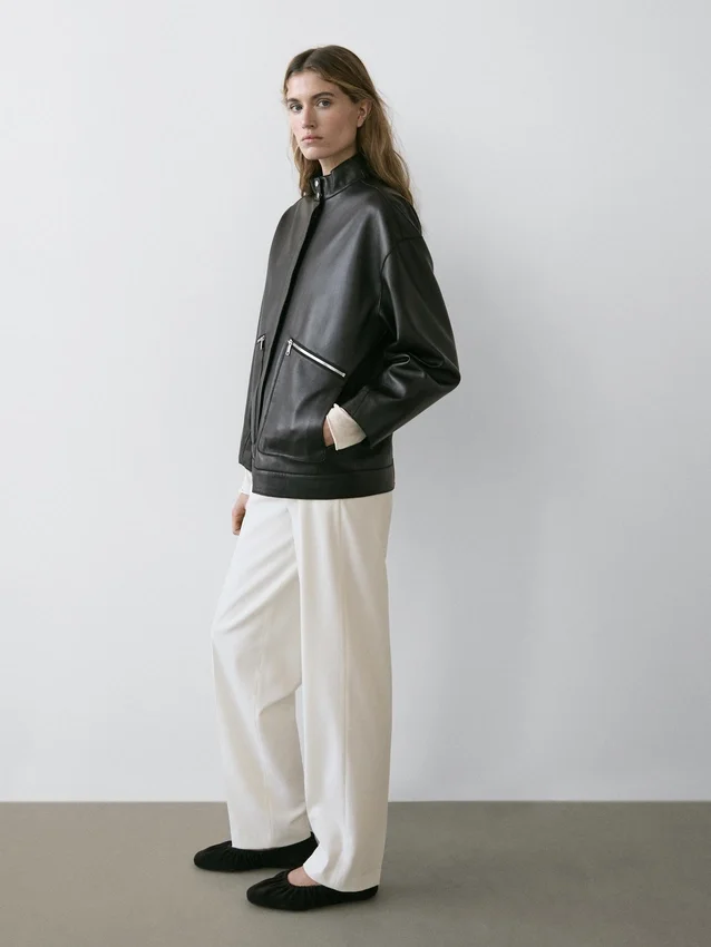 Sheepskin Leather Jacket with Nappa Finish. Long Sleeves. Concealed Zip Closure with Snap Buttoned Placket . Two Front Zipped Pockets.