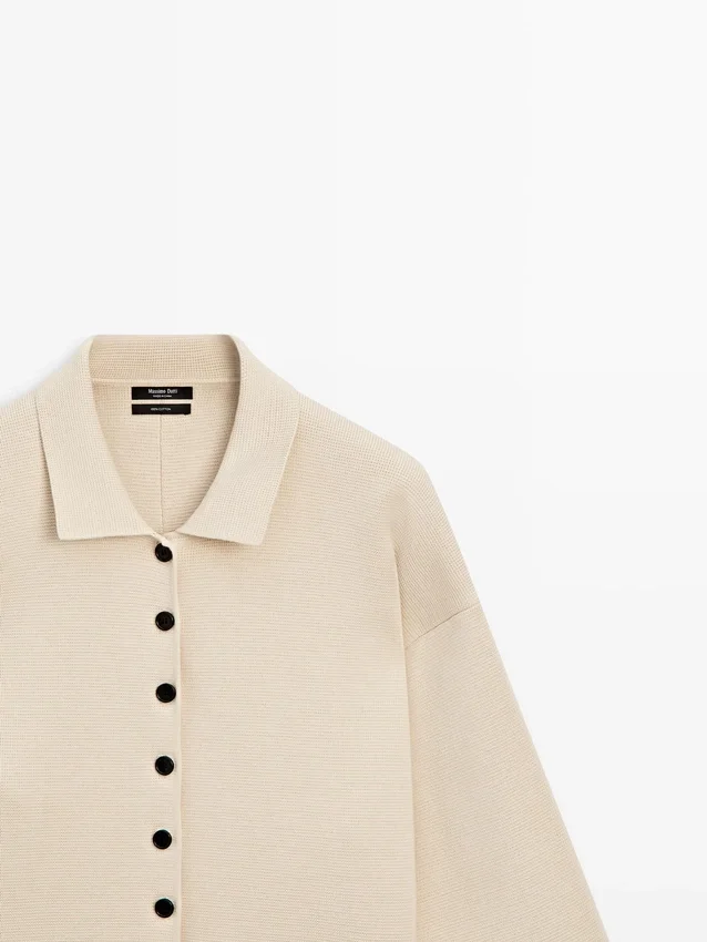 Cardigan Made of Knitted Fabric with Cotton. Long Sleeves with Ribbed Cuffs . Button-Up Front. Ribbed Trims .