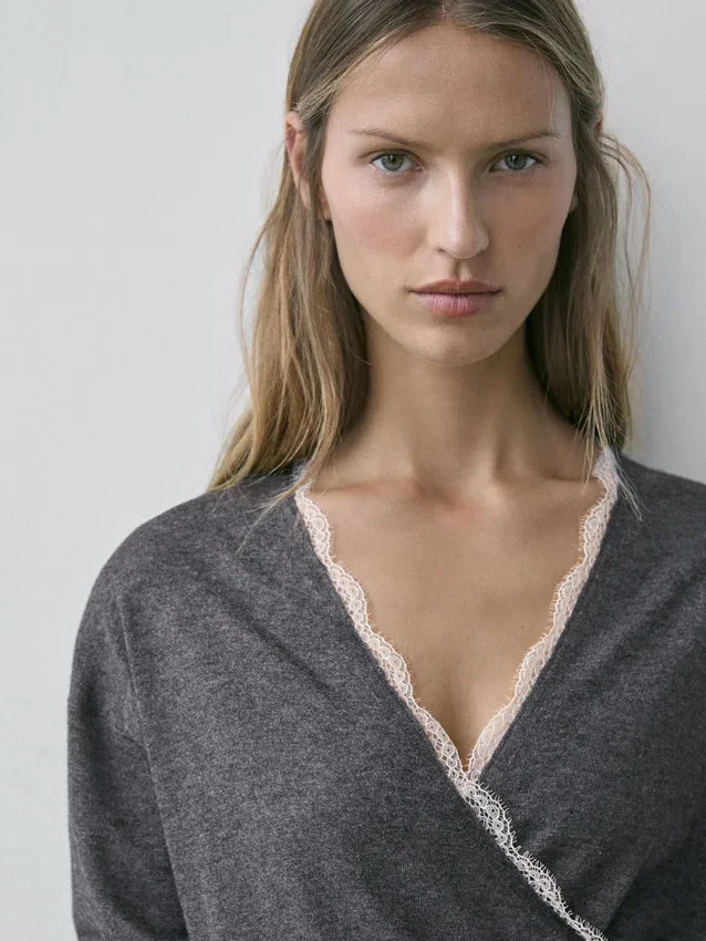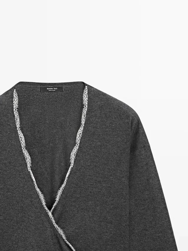 Be the first to review “Cross-Over Knit Cardigan with Lace Detail”