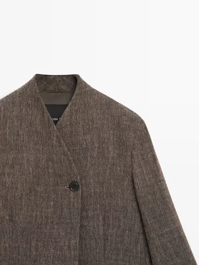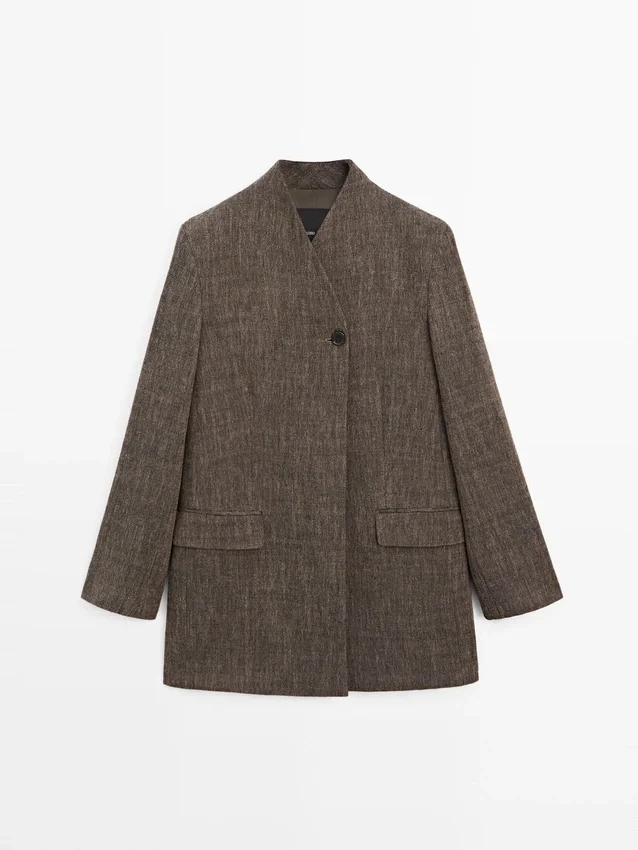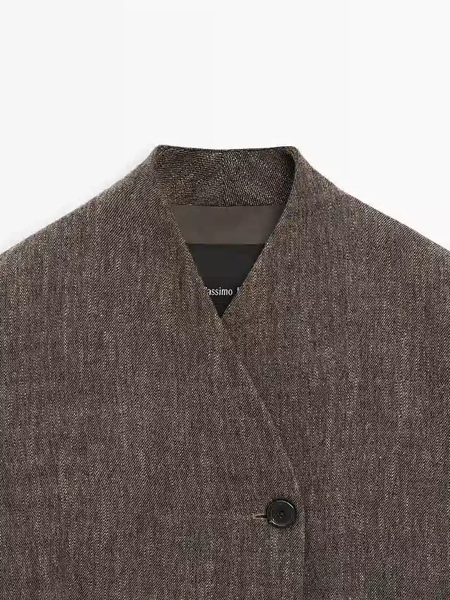 Short Coat Made of Wool Blend Fabric . High Collar. Two Side Pockets. Lined. Flecked-Effect Finish.