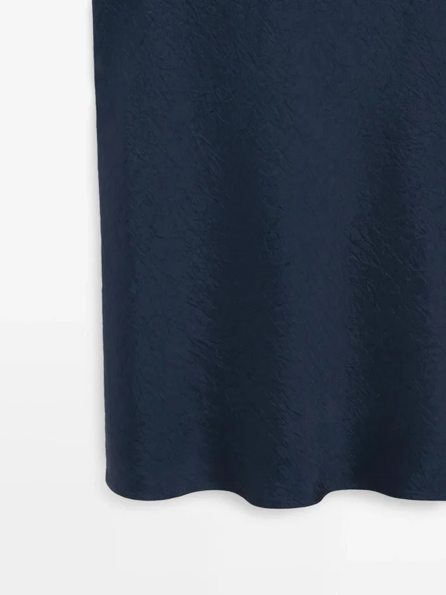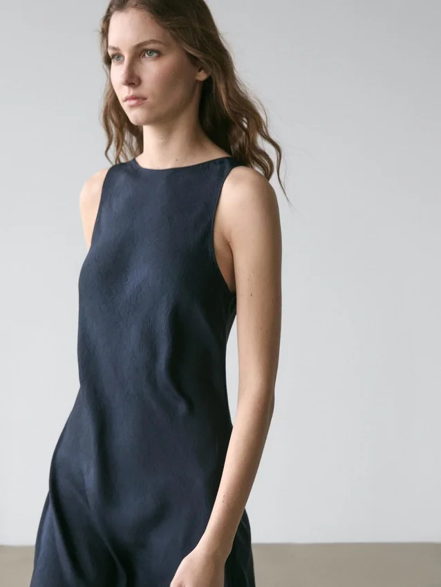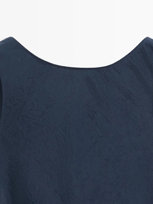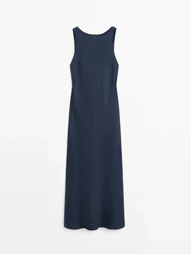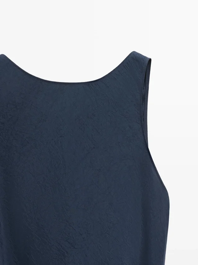 Midi-Cut Dress. Crew Neck. Sleeveless. Crinkle Finish, Creates a Crinkle Effect.