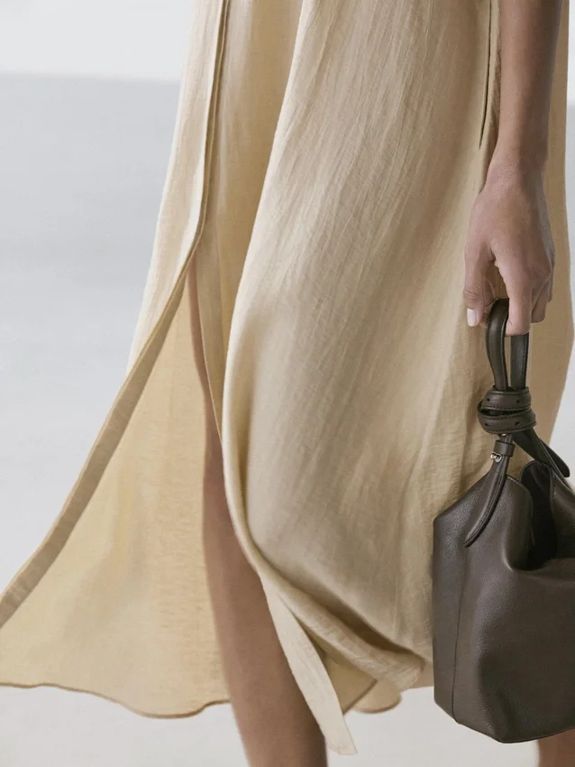 Midi Dress Made of a Linen Blend. Halter Neck. Sleeveless. Button-Up Front.