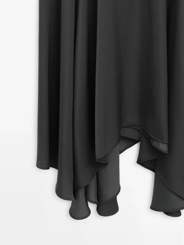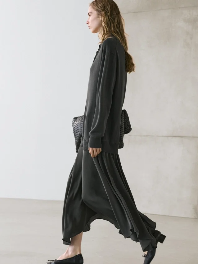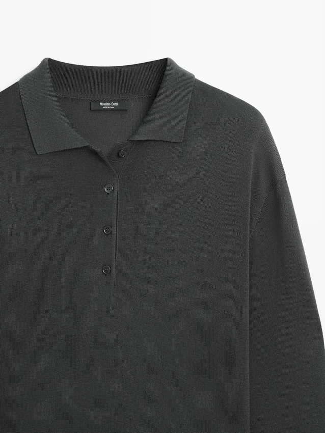 Midi Dress with Flared Skirt and Knitted Top.. Long Sleeves. Polo Collar with Button Fastening.