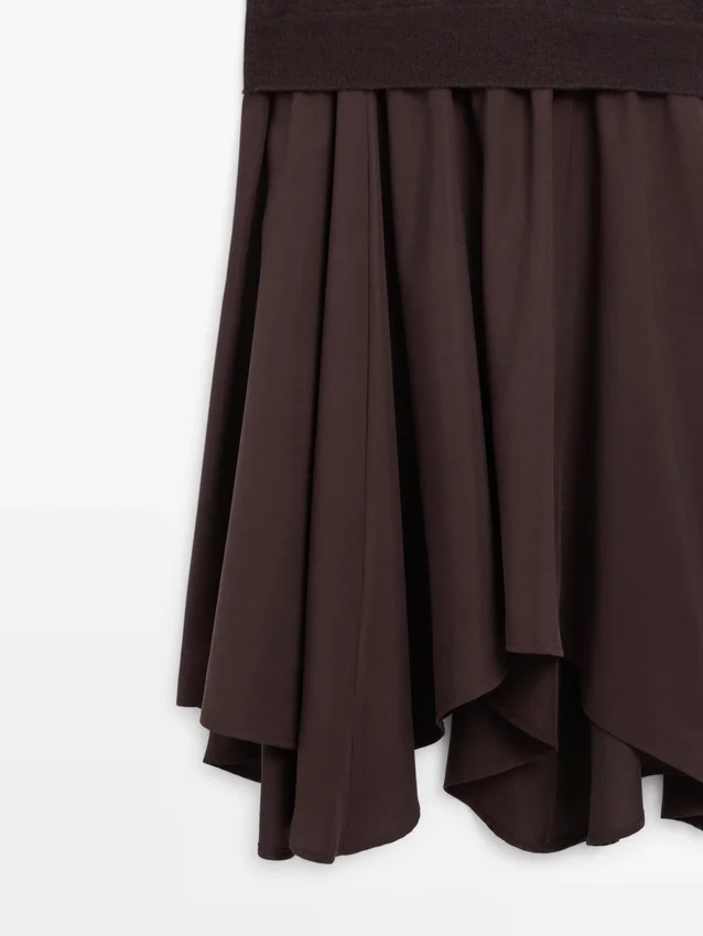 Midi Dress with Flared Skirt and Knitted Top.. Long Sleeves. High Collar.