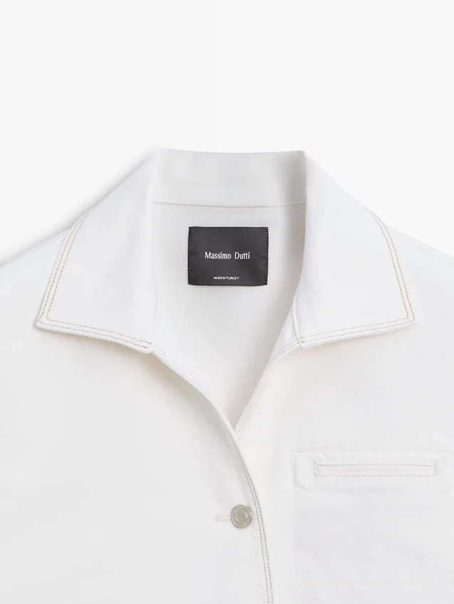 Denim Jacket. Shirt Collar. Long Sleeves. Button-Up Front. Insert Welt Pocket at the Chest. Contrast Colour Detail.