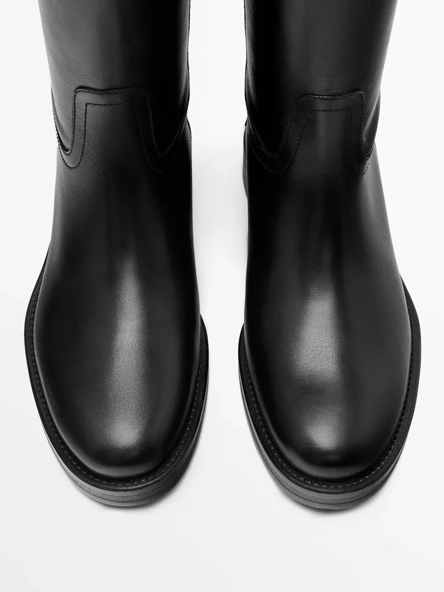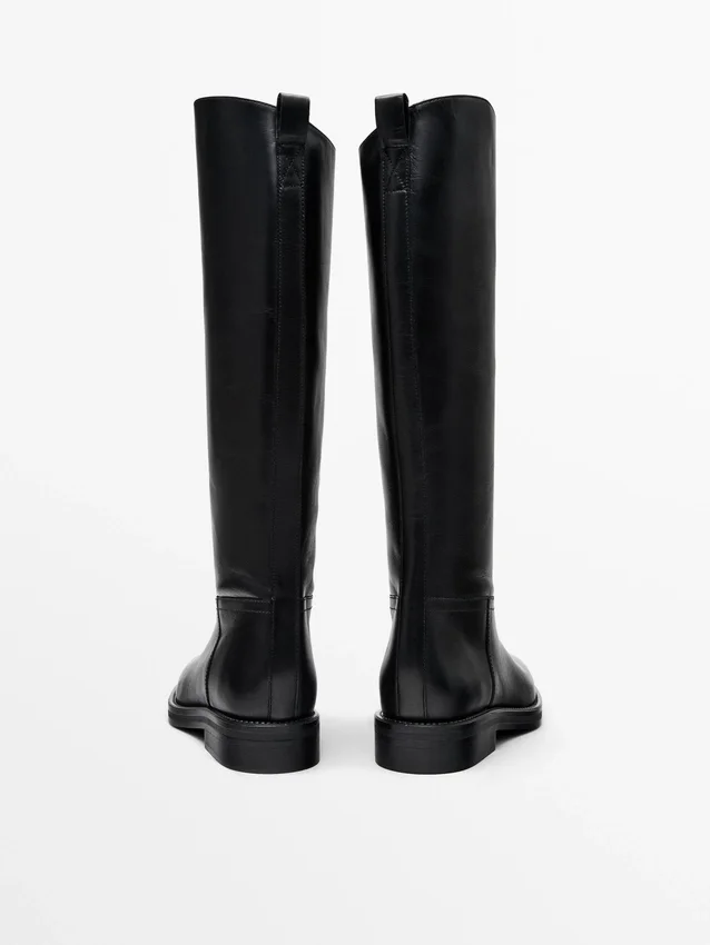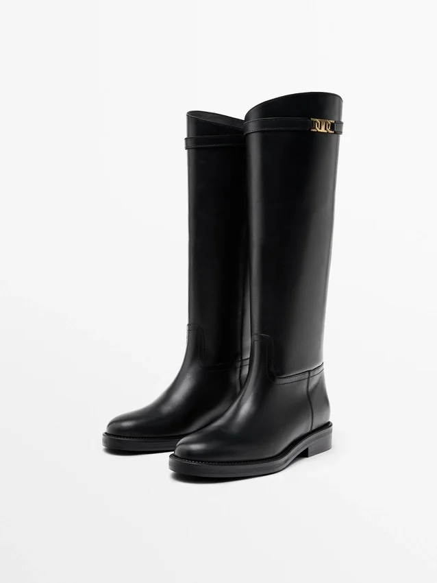 Made of Cowhide Leather. Detachable Ankle Strap. Gold Appliquas. Leather Lining and Insole . Leg Height: 42 Cm. Leg Width: 37 Cm. Heel: 3Cm. Includes Airfit® Insole: Flexible Technical Foam Insole, Designed to Offer Greater Comfort.