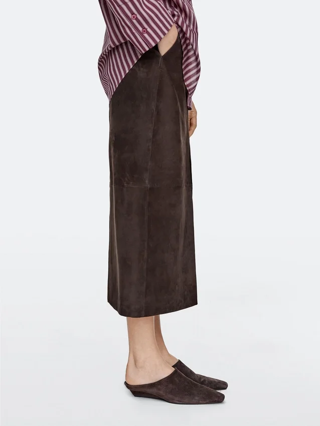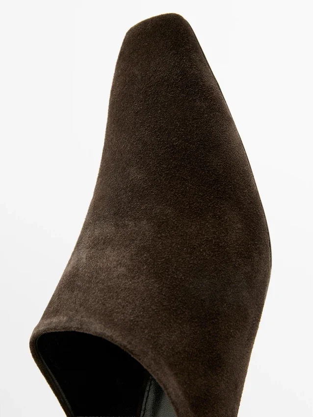 Made of Cowhide Leather with a Suede Finish. Backless. Leather Lining and Insole . Wedge Heel. Heel: 2.5 Cm.