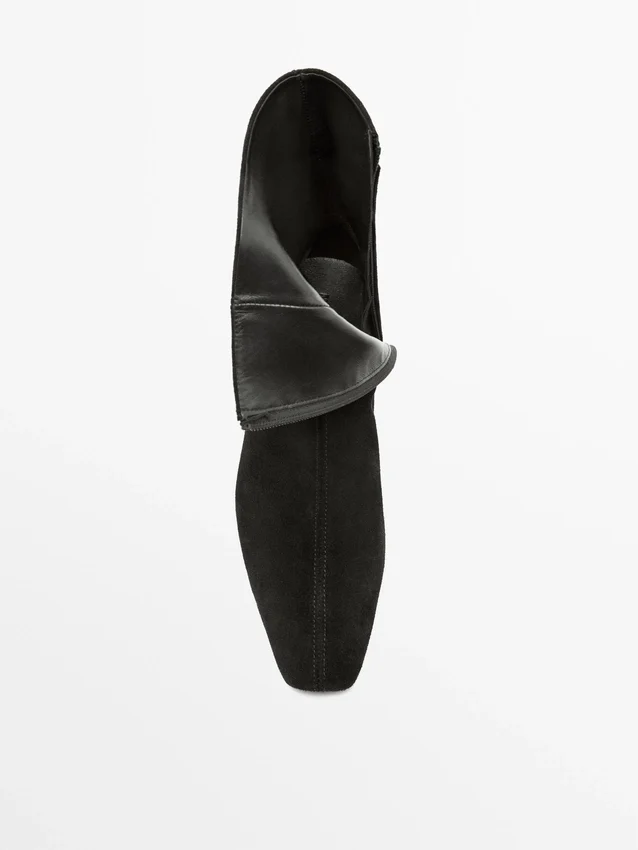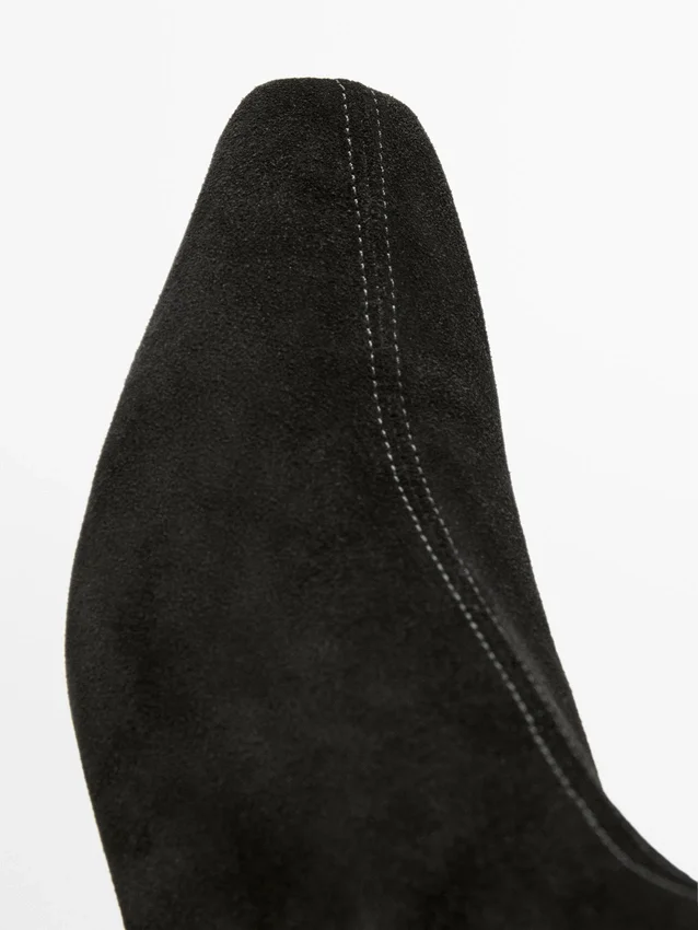 Made of Cowhide Leather with a Suede Finish. Soft Leather. Wedge Heel. Side Zip Fastening. Leg Height: 11 Cm. Leg Width: 27 Cm. Heel: 3Cm.