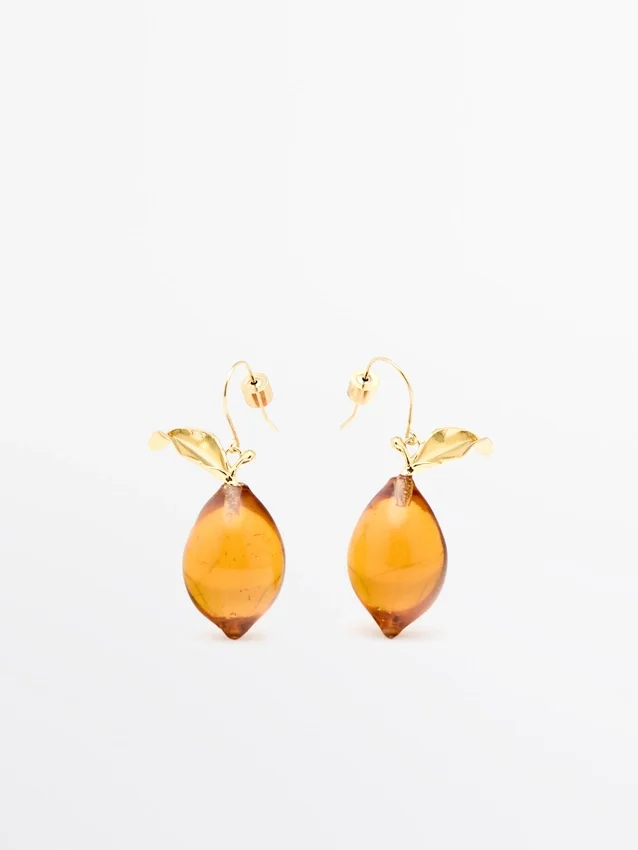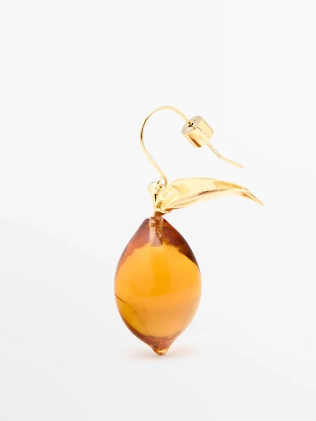 Earrings with Glass Drop and Leaf Detail. Hook Fastening .