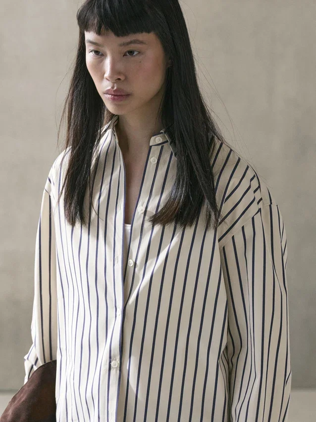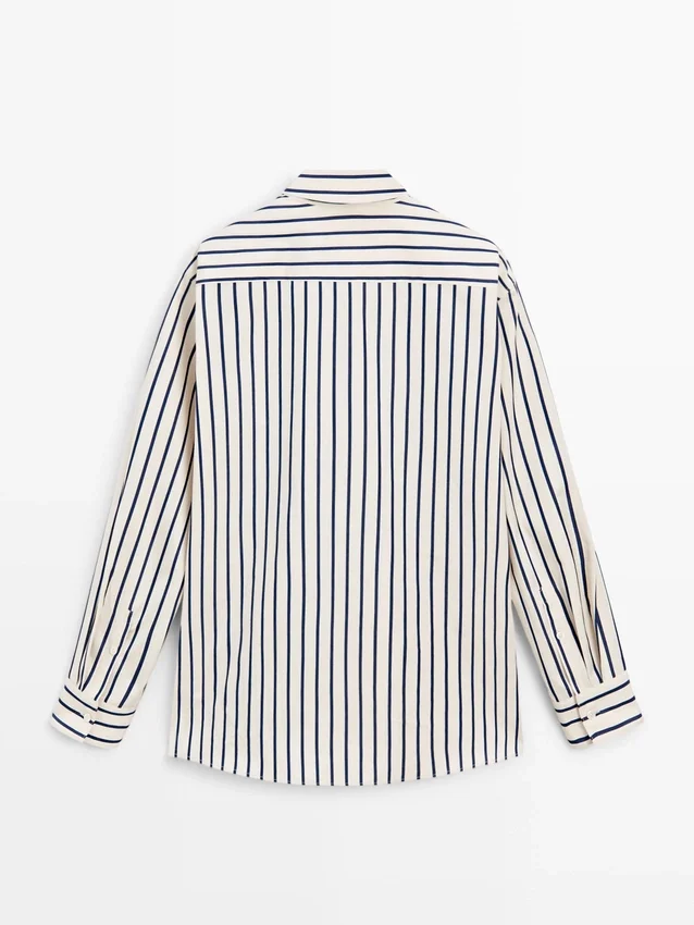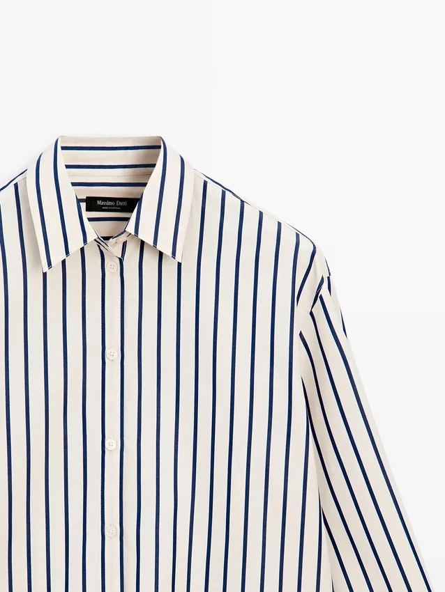 Shirt Made of 100% Cotton Fabric. Long Sleeves with Buttoned Cuffs. Shirt Collar. Button-Up Front. Striped Print.